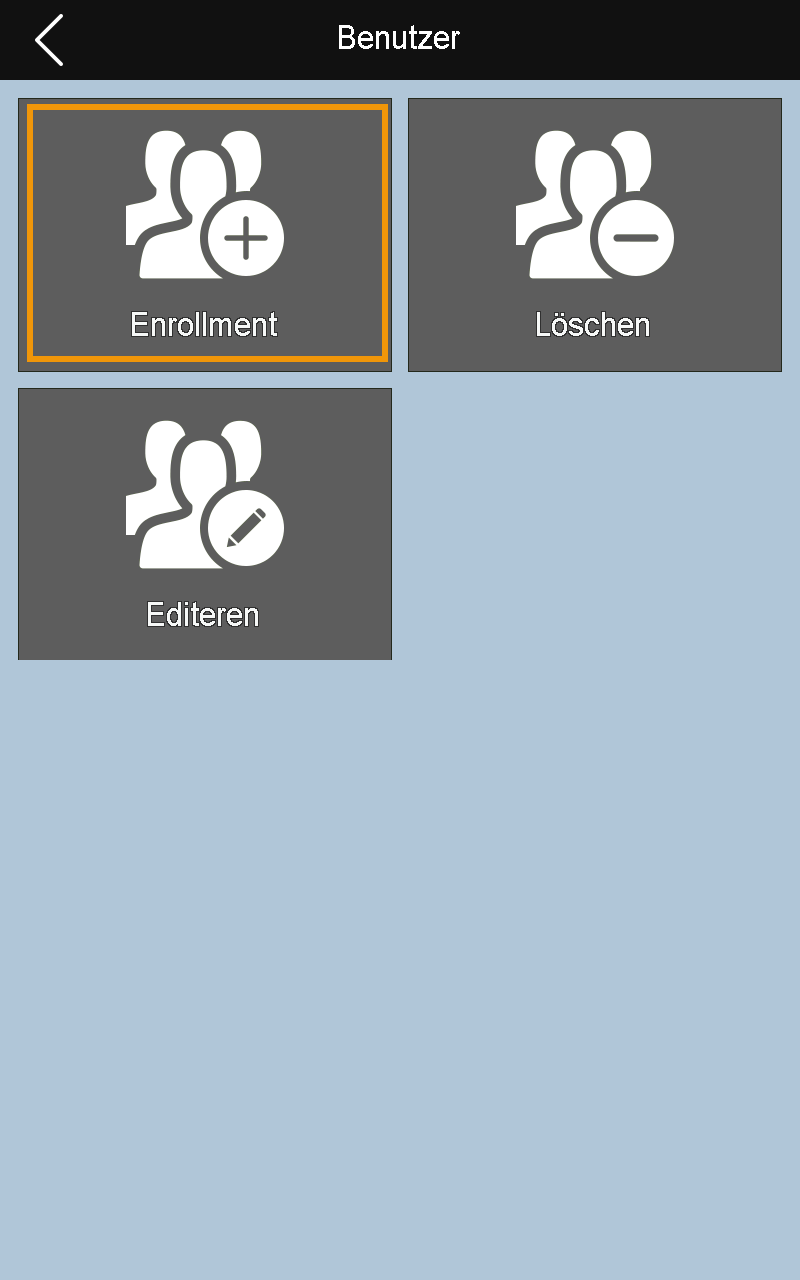 HINWEIS: Standardmäßig ist die Rechtevergabe am Terminal auf „Benutzer“ eingestellt. Um zu verhindern, dass Unbefugte Manipulationen im System vornehmen, sollte mindestens ein Benutzer als Administrator erfasst werden. Der Administrator besitzt sämtliche Rechte am Terminal, um im Menü Änderungen oder Einstellungen vorzunehmen.
