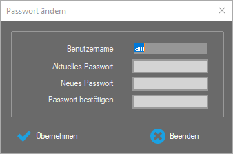 Nach der administrativen Vorgabe der Passwörter können berechtigte Benutzer der Software individuell ihre Passwörter ändern.