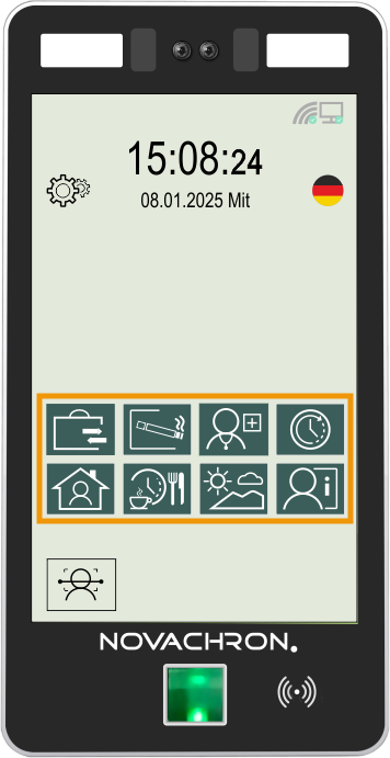HINWEIS: Bei einer Buchung in Verbindung mit einem Funktionscode, muss grundsätzlich erst die jeweilige Funktionstaste gedrückt werden. Anschließend den Buchungsvorgang mit dem Einlesen des angemeldeten Identifikationsmediums abschließen.