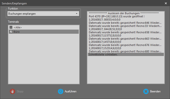 1. Terminalbuchungen zum PC übertragen und in der Datenbank speichern