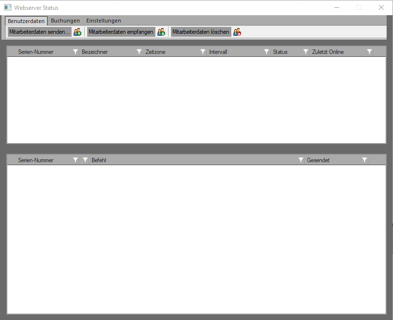 - Mitarbeiterdaten empfangen: Es werden alle im Terminal gespeicherten Mitarbeiterdaten ausgelesen.