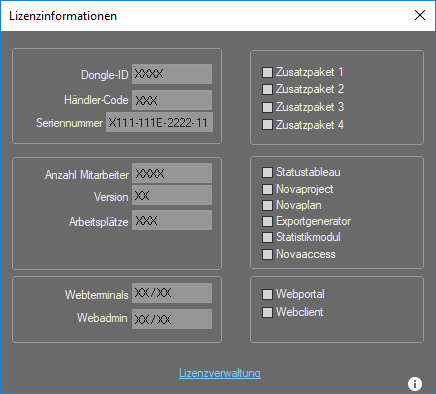 Hilfe ►Lizenzinformationen ►Lizenzverwaltung