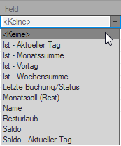 Format: Format angeben, in dem das ausgewählte Datenbankfeld angezeigt werden soll. Variablen als Platzhalter für Ausdrücke oder Werte, müssen dabei in spitze Klammern gesetzt werden, zum Beispiel