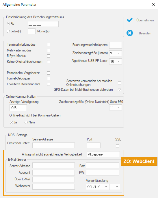 Zur Einrichtung müssen unter Extras ►Allgemeine Parameter die folgenden Parameter beachtet werden:
