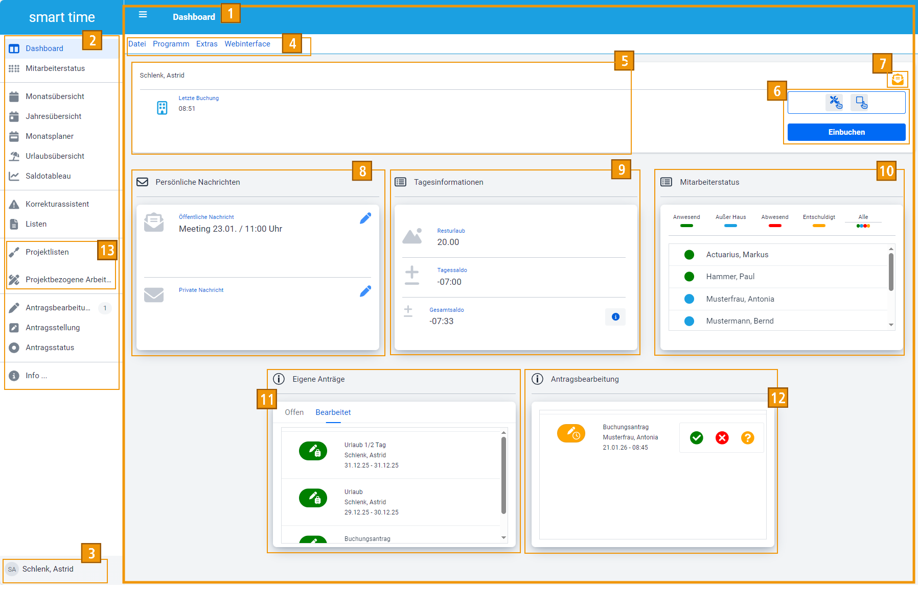 Menüleiste: Zugriff auf weitere Funktionen; steht nur Vorgesetzten mit Administratorenrechten zur Verfügung |