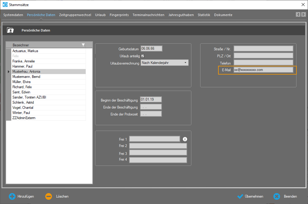 4. Klicken Sie in der Software auf Mitarbeiter Stammsätze Persönliche Daten.