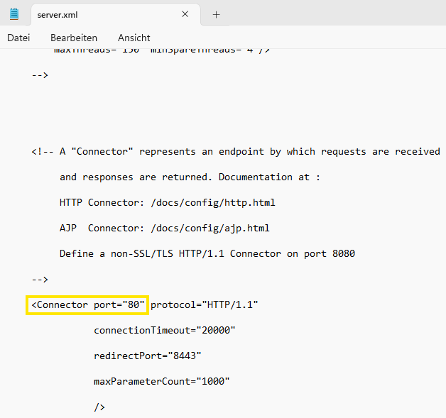 Möchten Sie den bei der Installation der Software festgelegten Webserver-Port nachträglich ändern, gehen Sie bitte folgendermaßen vor: