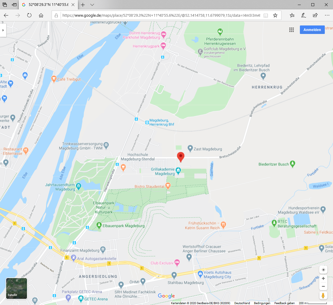 klicken. Über den eingestellten Webbrowser wird die Standort-Position aufgezeigt.