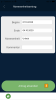 Mitarbeiter haben die Möglichkeit einen Antrag für eine geplante Abwesenheit zu stellen, zum Beispiel für Urlaub, Dienstreise oder Ähnliches.