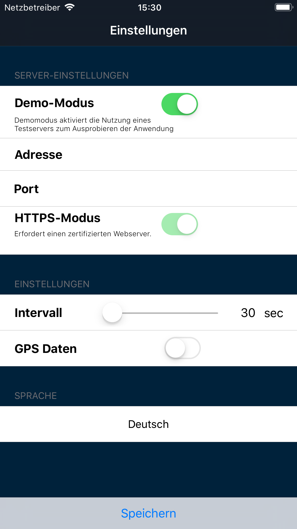 Sprache: Standardsprache der Smartphone-App ist Deutsch. Als weitere Sprachen stehen Englisch, Französisch, Italienisch, Finnisch, Niederländisch, Ungarisch und Rumänisch zur Auswahl.