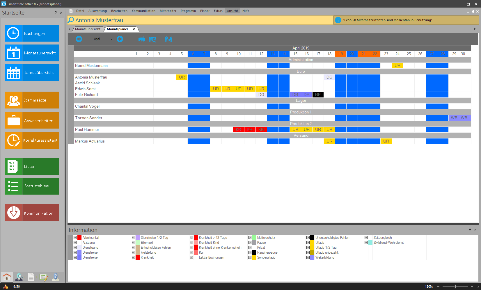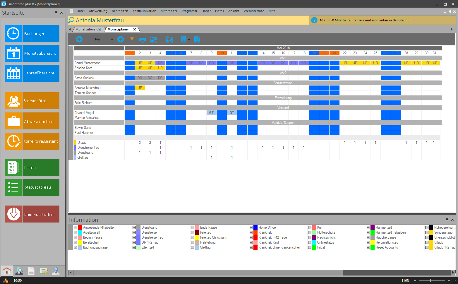 Die Ansicht kann für alle Mitarbeiter erfolgen oder nach Abteilungen eingeschränkt werden.
