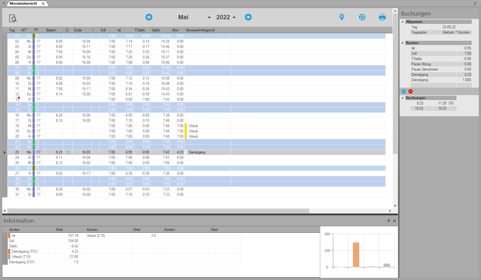 HINWEIS: In der Monatsübersicht können Sie nur in selbst definierten Spalten direkt Korrekturen eintragen. Das Programm berechnet dann automatisch den Korrekturwert.