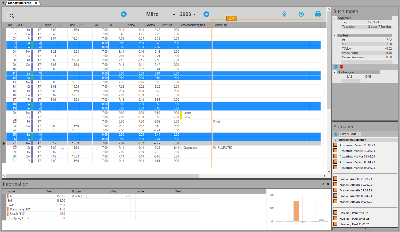 Ist innerhalb des Unternehmens vereinbart, dass für mobile Arbeitszeitbuchungen
