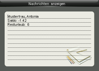 Beim nächsten Buchungsvorgang am Terminal erhält der Mitarbeiter die an ihn gerichtete Terminalnachricht.