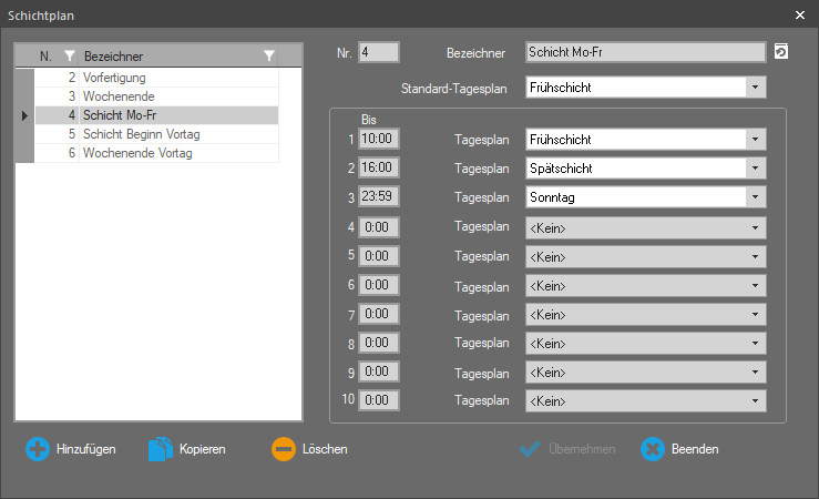 HINWEIS: Der Löschvorgang kann nicht mehr rückgängig gemacht werden. Vergewissern Sie sich daher unbedingt vorher, ob dieser Schichtplan nicht Bestandteil einer noch be-stehenden Arbeitszeitregelung ist.