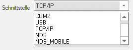 Schnittstelle: Auswahl der Schnittstelle, an der das Terminal angeschlossen ist und über die die Kommunikation erfolgen soll.