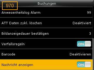 Damit die Terminalnachricht beim nächsten Buchungsvorgang des Mitarbeiters am Terminal angezeigt wird, gehen Sie folgendermaßen vor: