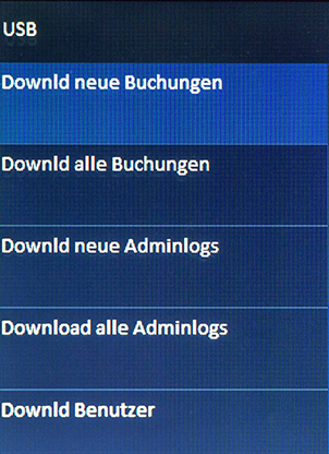 Daten über einen USB-Speicher vom Terminal abrufen: Download neue Buchungen: Neue Buchungsdaten herunterladen.