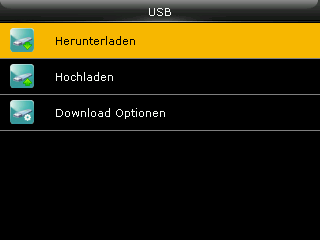 Verfügen Sie über keinen Zugang zu einer Netzwerkverbindung oder Sie können das Terminal nicht in Ihrem Netzwerk integrieren, haben Sie die Möglichkeit, mit einem USB-Speicher Buchungsdaten, Benutzerdaten und Adminlogs vom Terminal abzurufen.