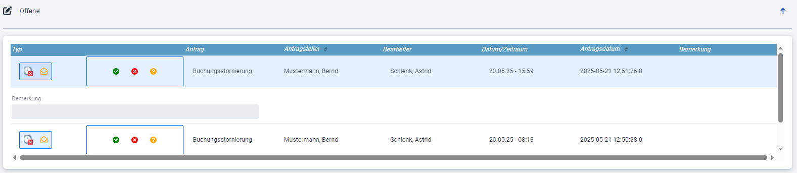 Offener Buchungsantrag |