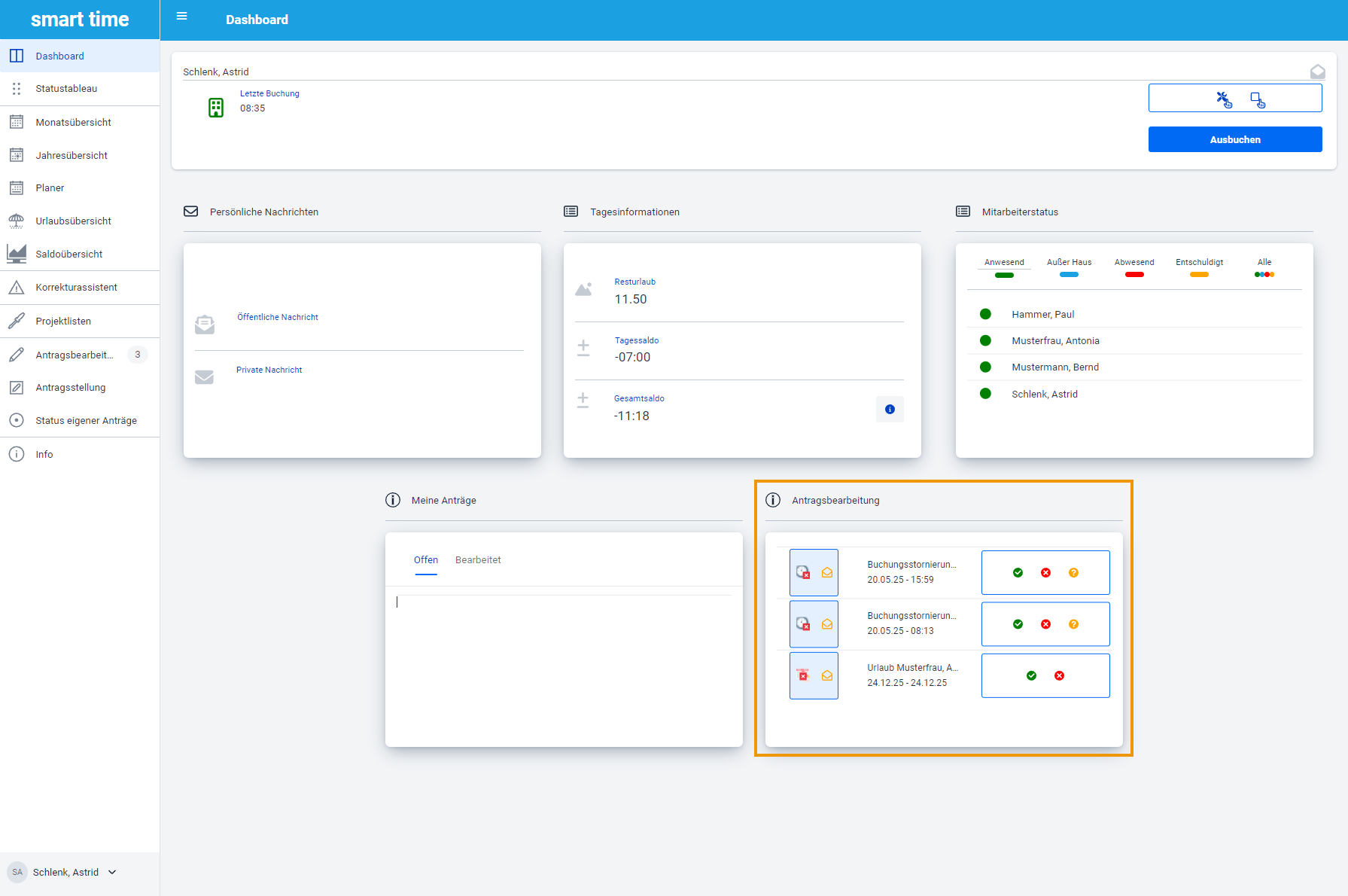 Einen Überblick über anliegende Anträge erhält der Antragsgenehmiger (Vorgesetzte)