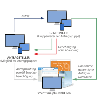 Beim mehrstufigen Genehmigungsverfahren müssen die Anträge, die im Webclient bzw. in der App gestellt werden, nacheinander mehreren Genehmigern vorgelegt und von diesen genehmigt werden.