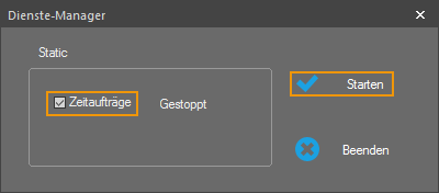 Es stehen Ihnen nur noch Menüs zur Verfügung, die für das korrekte Verarbeiten von Zeitaufträgen als Windows-Dienst relevant sind. Auf andere Menüs kann nicht zugegriffen werden.