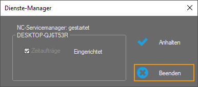 HINWEIS: Unter Systemsteuerung/Verwaltung/Dienste/NCServiceManager können Sie kontrollieren, ob der Windows-Dienst für die Zeitaufträge gestartet wurde. Als Starttyp muss „Automatisch“ angewählt sein.